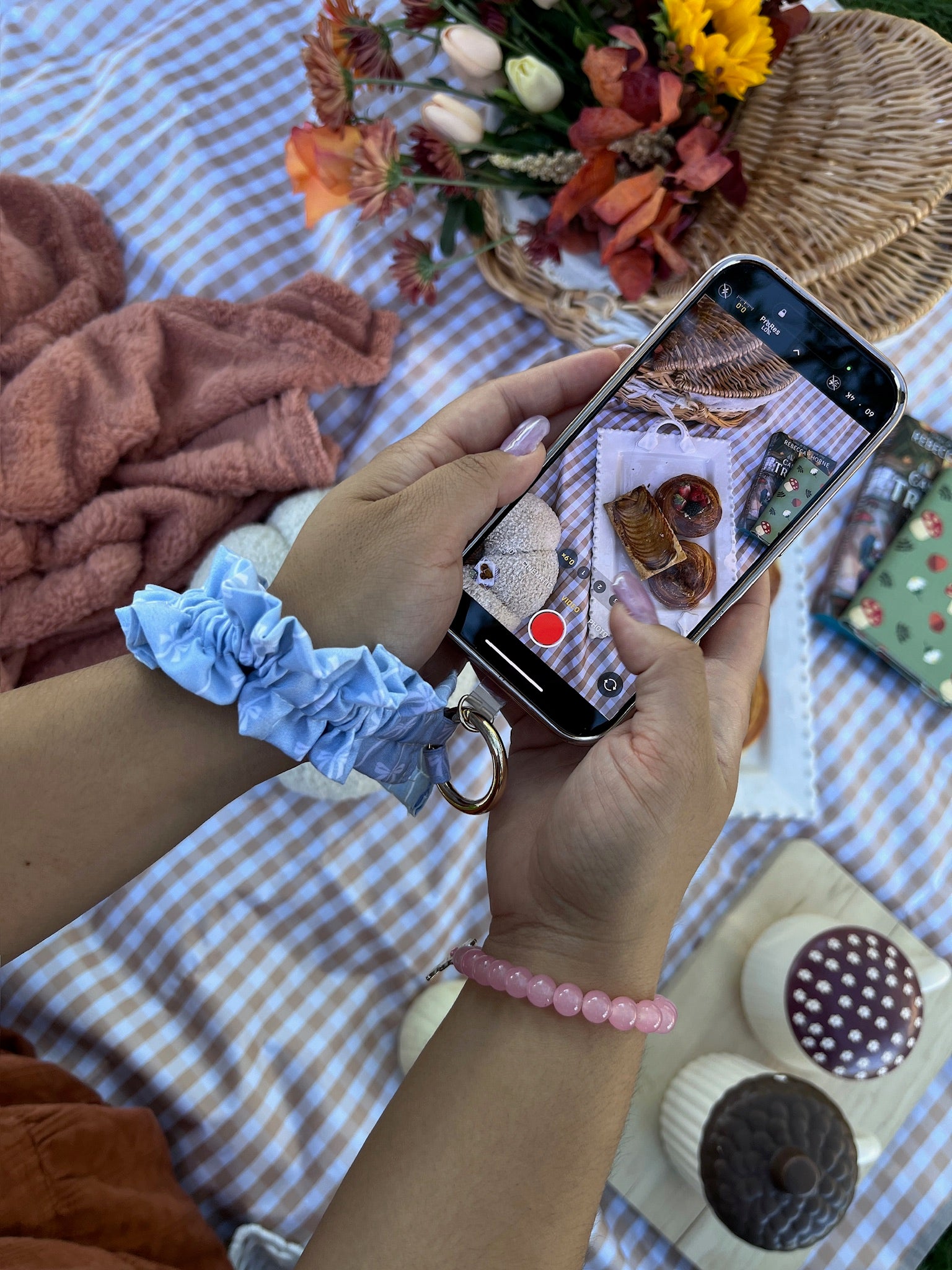 Soft, sweet, and effortlessly chic — the Lillie Wristlet in Baby Blue is your new everyday essential. Crafted from smooth cotton-blend fabric, this delicate pastel wrist strap keeps your phone or keys close while elevating your look with a dreamy touch of color.