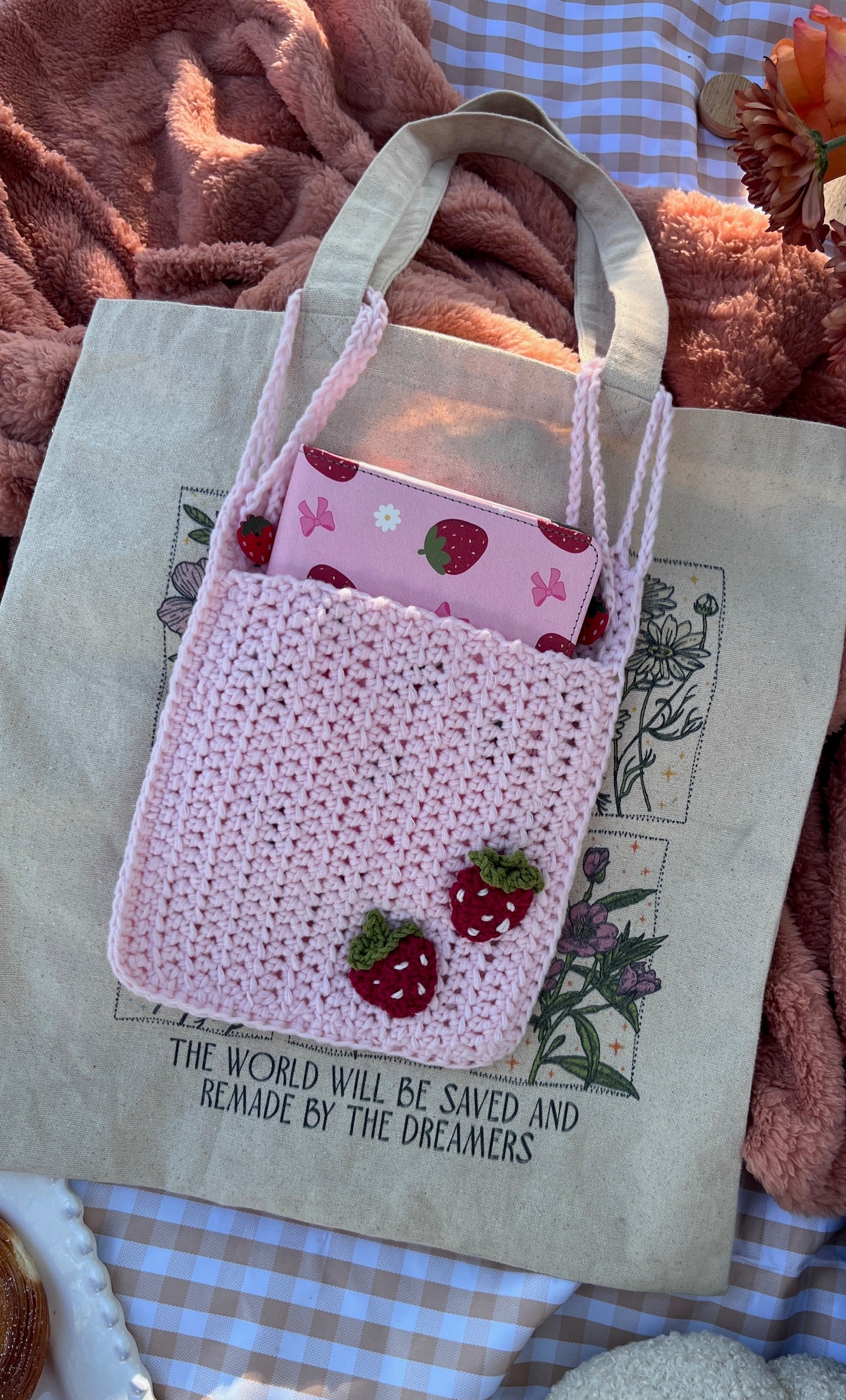 ✨ Whether you're going for a soft girl aesthetic, prepping for a picnic, or organizing your on-the-go essentials, this crochet strawberry tote insert is the sweet little upgrade your bag needs.
